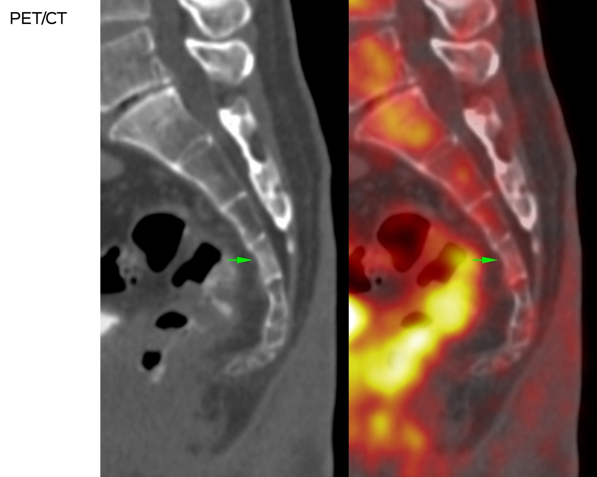 The patient’s symptoms and MRI did not match. A PET/CT was then done for further work-up.