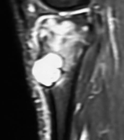 MRI shows marrow edema - this is now a “benign aggressive” lesion.