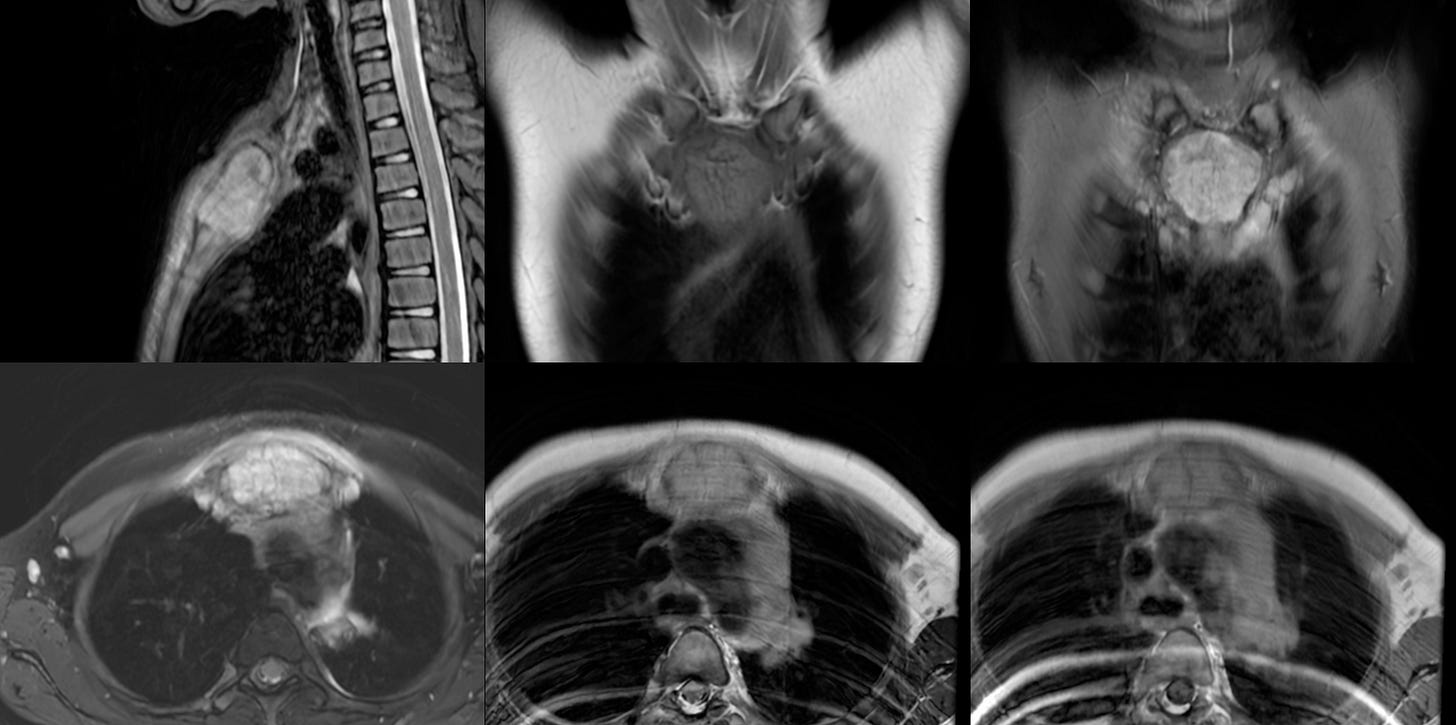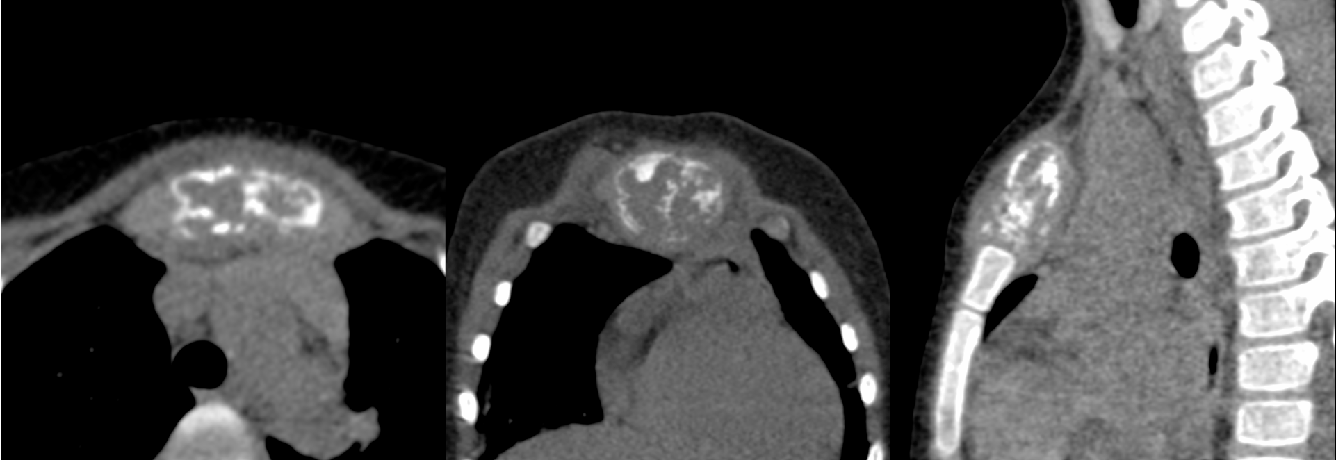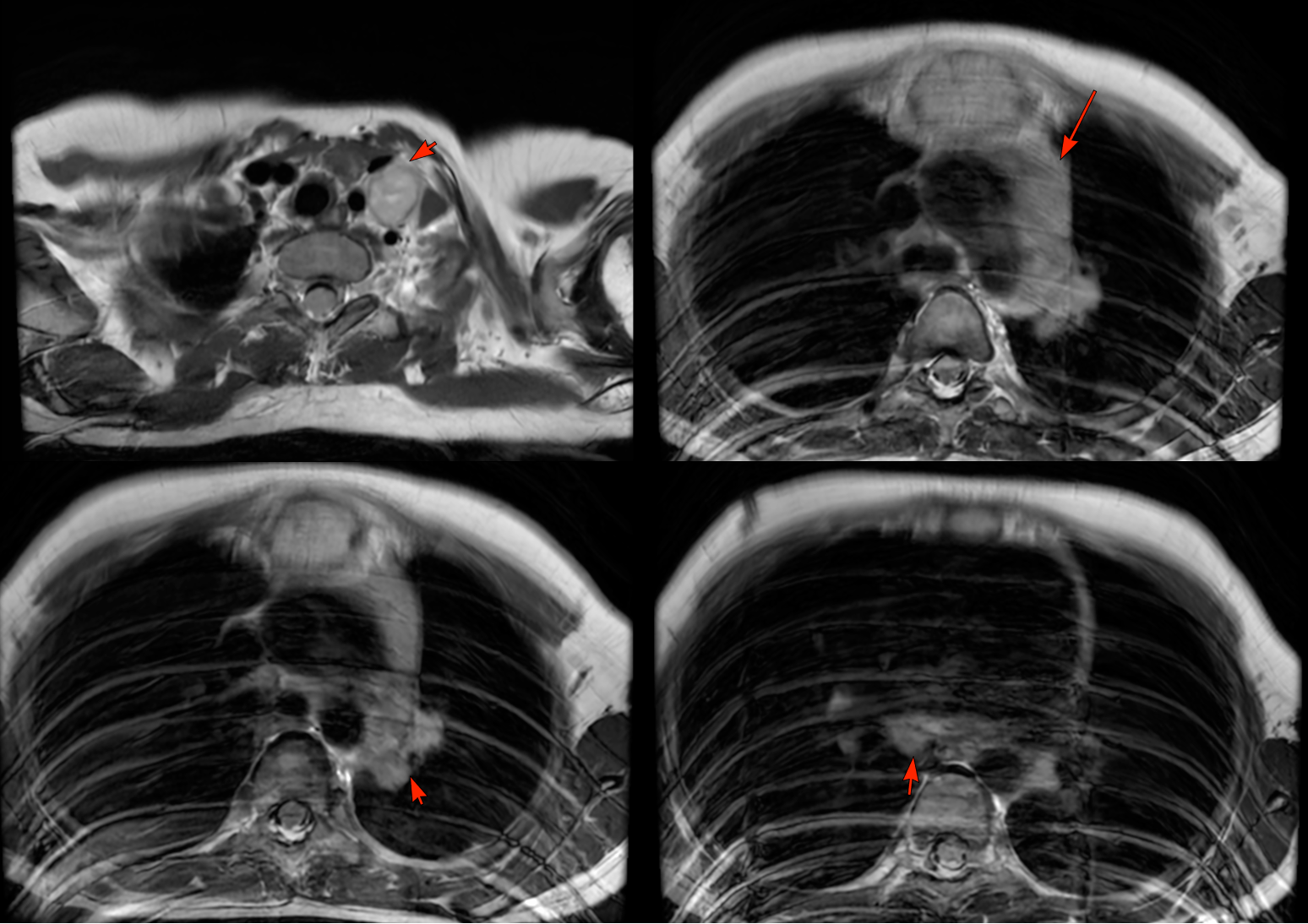MRI showed an expansile osteolytic lesion in the manubrium sternum.