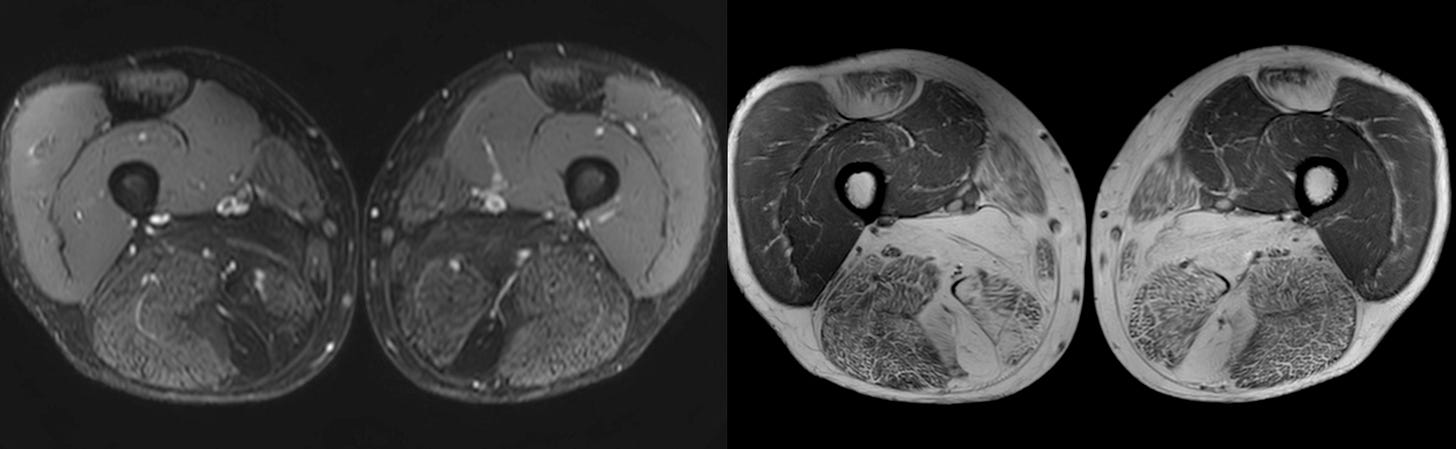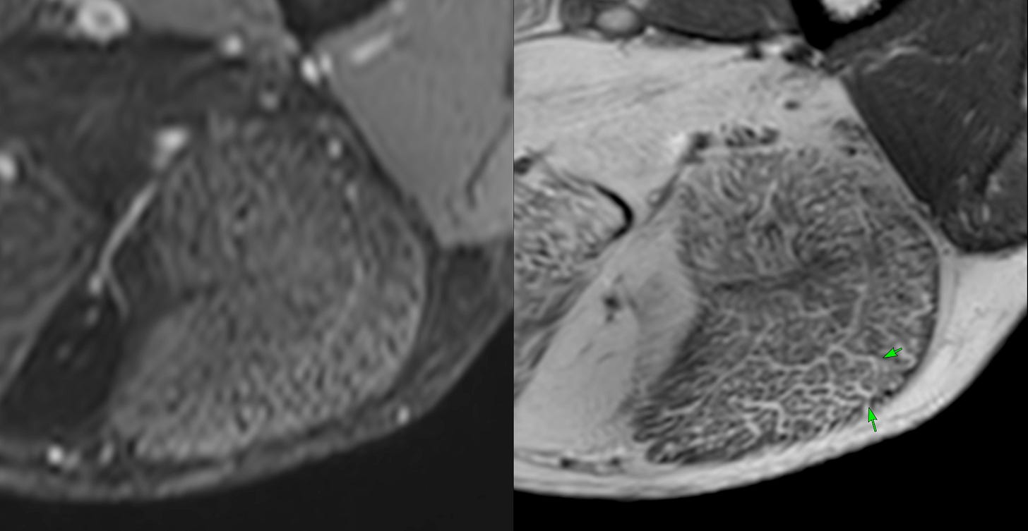 The video describes the classic honeycomb pattern in this patient’s muscles and the implications and compares with the other patterns - fascial and peripheral/foggy described earlier in previous videos.